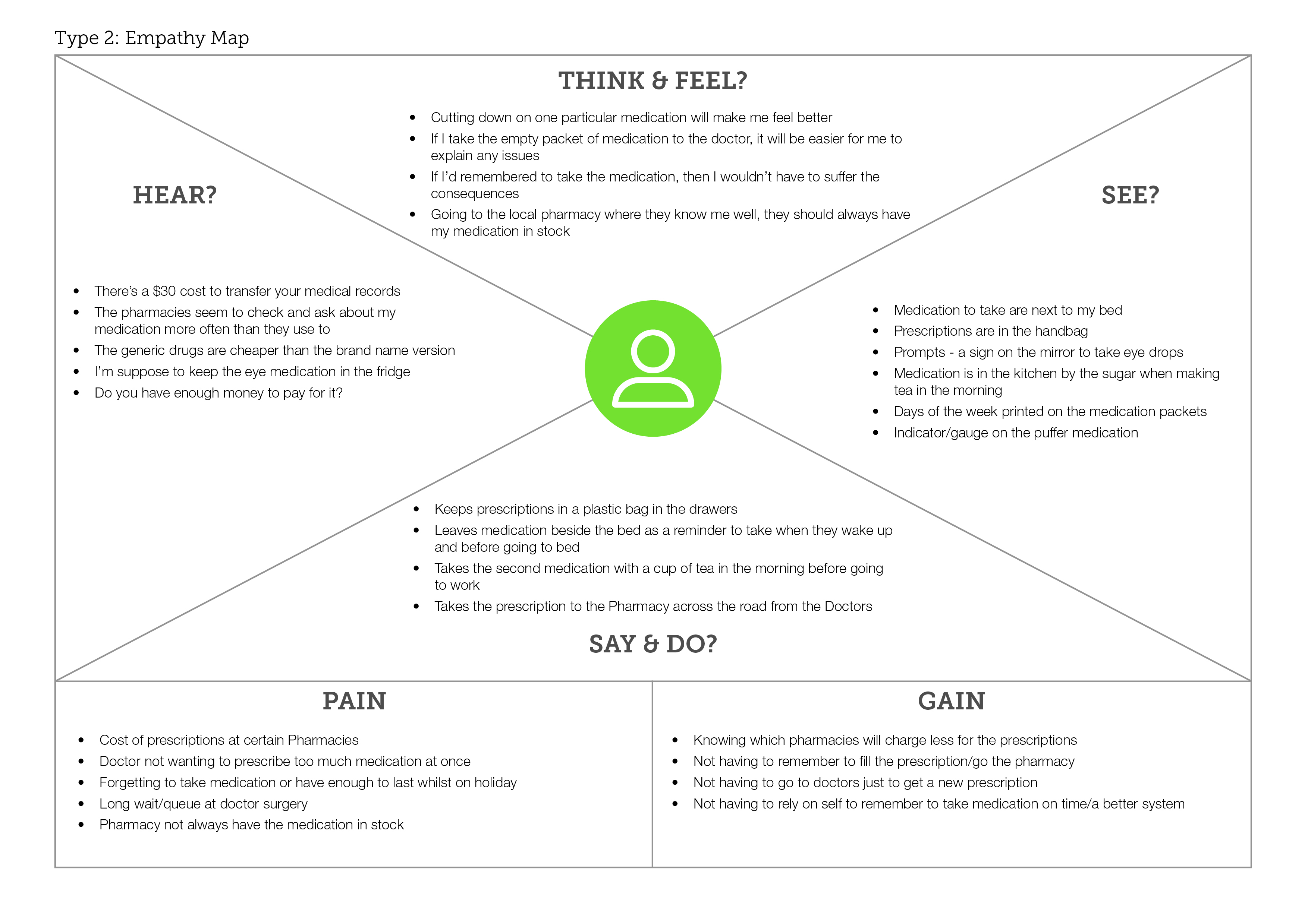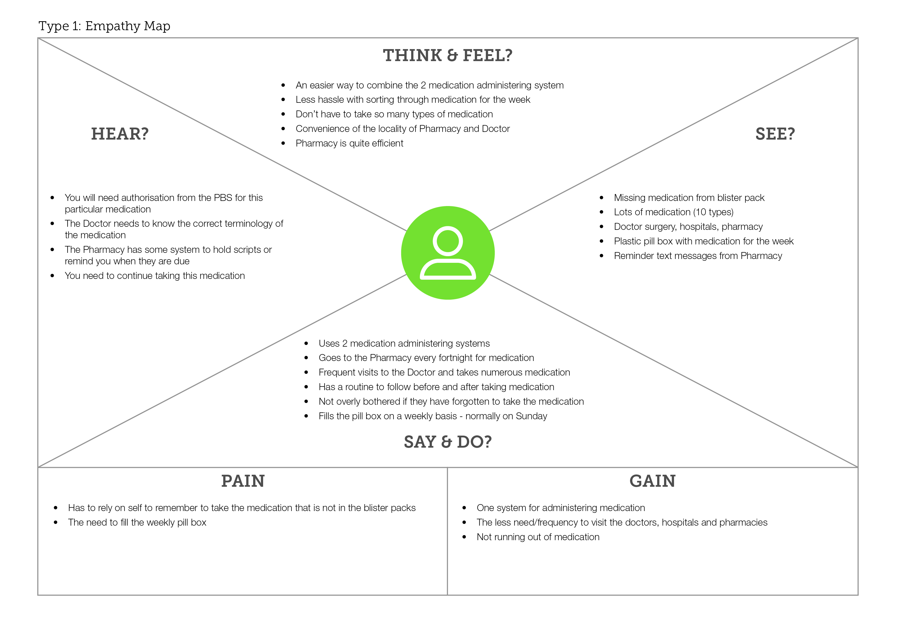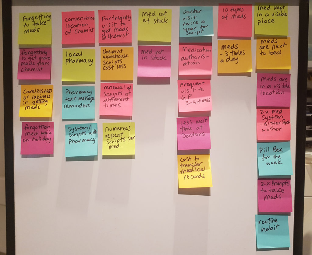 The design challenge was not the problem idea itself but where to begin. The goal was to streamline the process from visiting the Doctor through to sourcing and managing the medication. My project journey uncovered different problems and frustrations through research, empathising and understanding user needs.